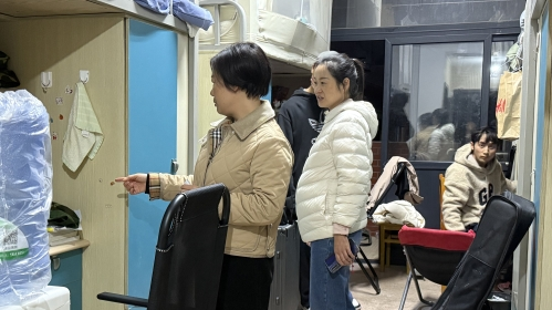 走访过程中,汪欢与同学们交谈,了解他们的学习和生活情况,叮嘱同学们要注意防寒保暖,合理作息,再次强调不要在宿舍违规使用大功率电器,确保人、财、物的安全。同时,对同学们利用公司“一站式”员工社区开展自习的情况进行调研。